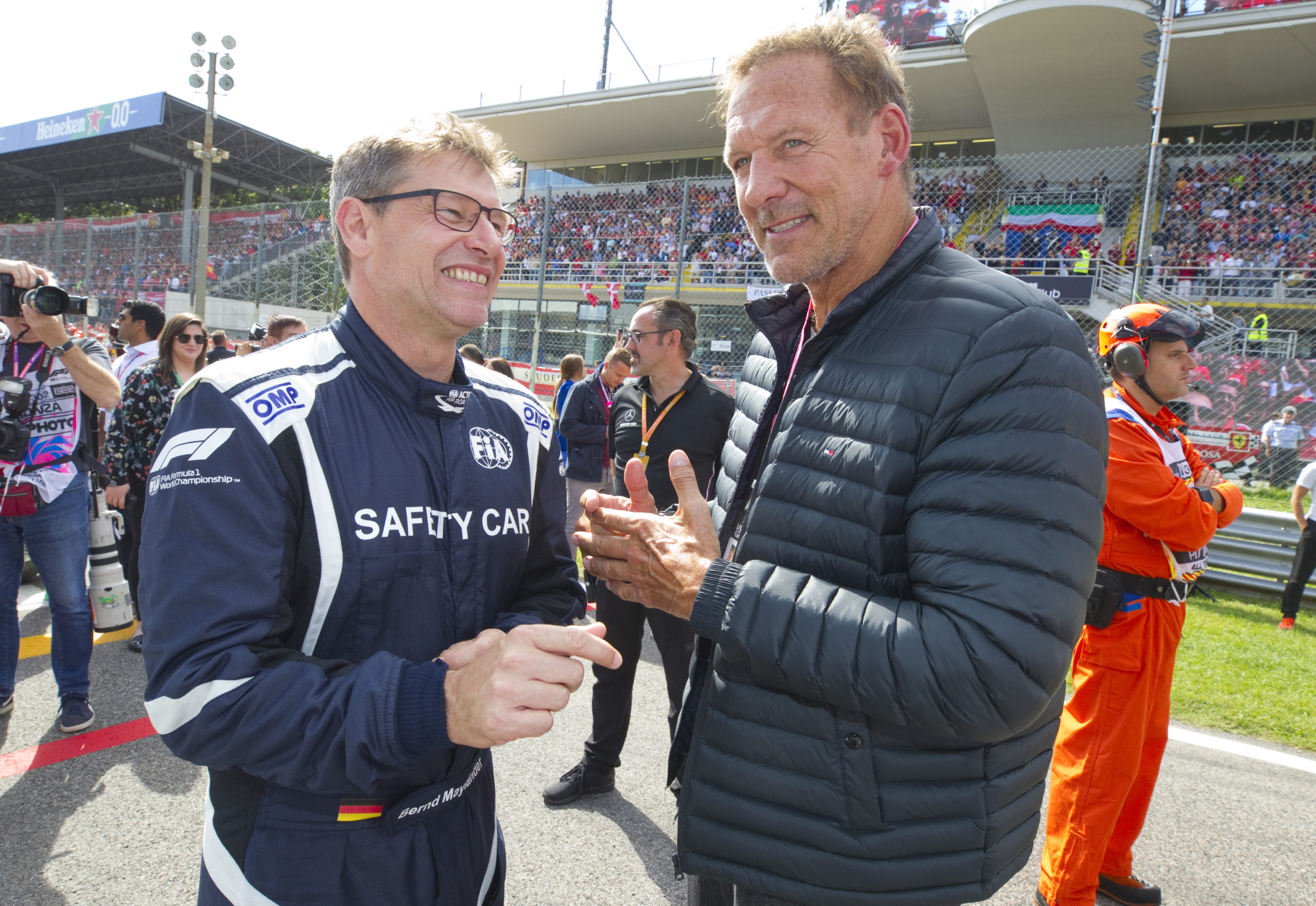 Germany’s Bernd Mayländer (left) will remain behind the wheel of the FIA Safety Car. Copyright: Mandoga Media