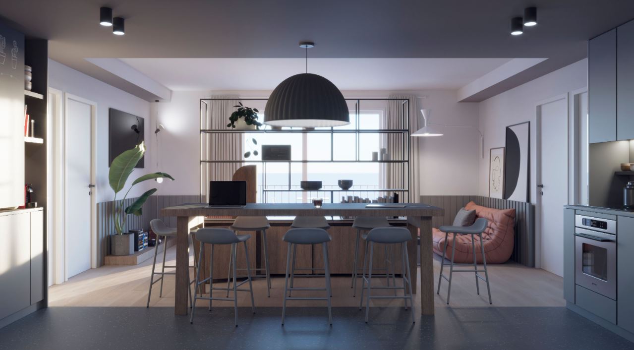 Die Gemeinschaftsbereiche eines Coliving-Apartments sind hybrid ausgelegt und nicht auf eine bestimmte Funktion beschränkt. Das Areal ist offen gestaltet, sodass viele Nutzungsmöglichkeiten des täglichen Lebens miteinander koexistieren können, ohne sich gegenseitig zu behindern. Vorbild dafür ist „The Circle“, der wandelbare Gemeinschaftsbereich in den Aparthotels Adagio mit einem großen Tisch und der „Bibliothek der Dinge“. Das Gemeinschaftsareal bildet das Zentrum des Coliving Apartments, von dem die privaten Räumlichkeiten sternenförmig abgehen.