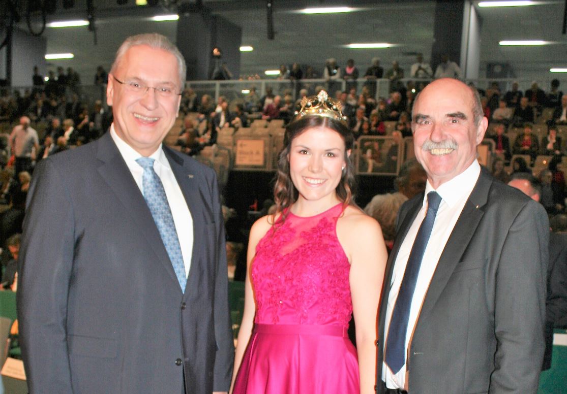 Die fränkische Weinkönigin 2019 – Carolin Meyer (aus Castell) hier bei Ihrer Krönung im März 2019 – geht in eine 3. Amtszeit.