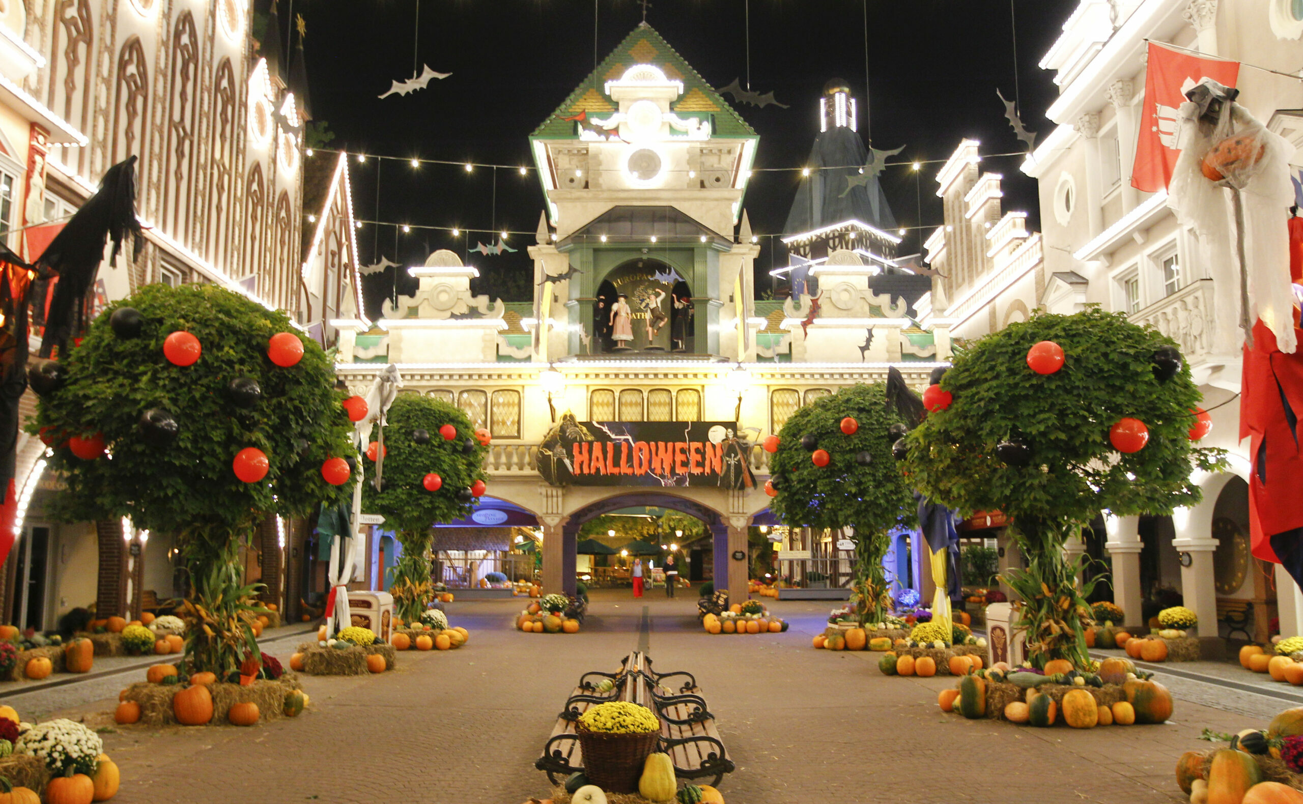 Wenn die Tage langsam wieder kürzer werden, sich die Bäume bunt färben und dichter Nebel die Sonne verdeckt, erobern finstere Gestalten das Europa-Park Erlebnis-Resort und verleihen Deutschlands größtem Freizeitpark seinen besonderen Herbstlook. 180.000 Kürbisse in allen Größen und Formen, 15.000 Chrysanthemen, 6.000 Maispflanzen, 3.000 Strohballen und mehr als 100.000 Herbstblumen in den Beeten lassen die 15 europäischen Themenbereiche als zauberhaft bunte Herbstlandschaft erstrahlen. Dicke Spinnweben und schaurig-schöne Musik in allen Ecken des Europa-Park sorgen für die richtige Halloween-Stimmung.