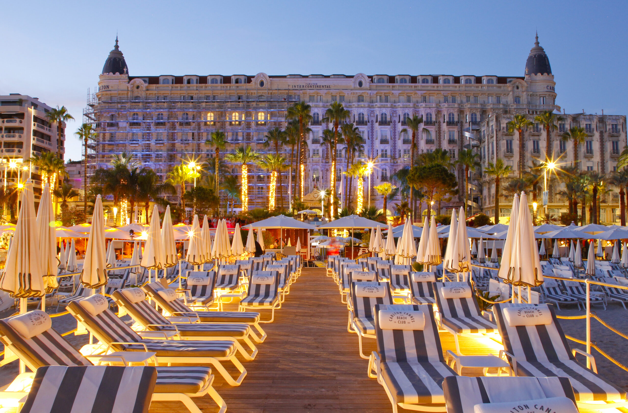 Cette vue en contraste du bleu profond de la Méditerranée, sa façade, joyau de la Croisette, est le plus emblématique de tous les hôtels du monde.